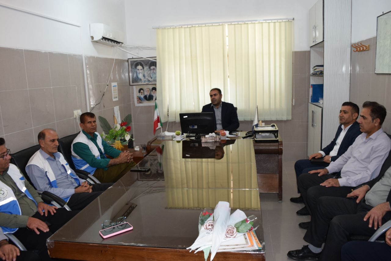 به گزارش روابط عمومی شبکه بهداشت و درمان شهرستان بهمئی، مهندس علی آبشنگ سرپرست شبکه بهداشت و درمان با همراهی جمعی از کارکنان ستاد شبکه به مناسبت روز جهانی بهداشت محیط با پرسنل پرتلاش این گروه دیدار کرد و ضمن تبریک این مناسبت از خدمات ارزنده آنان با اهدای لوح تقدیر و شاخه گل تجلیل به عمل آورد.