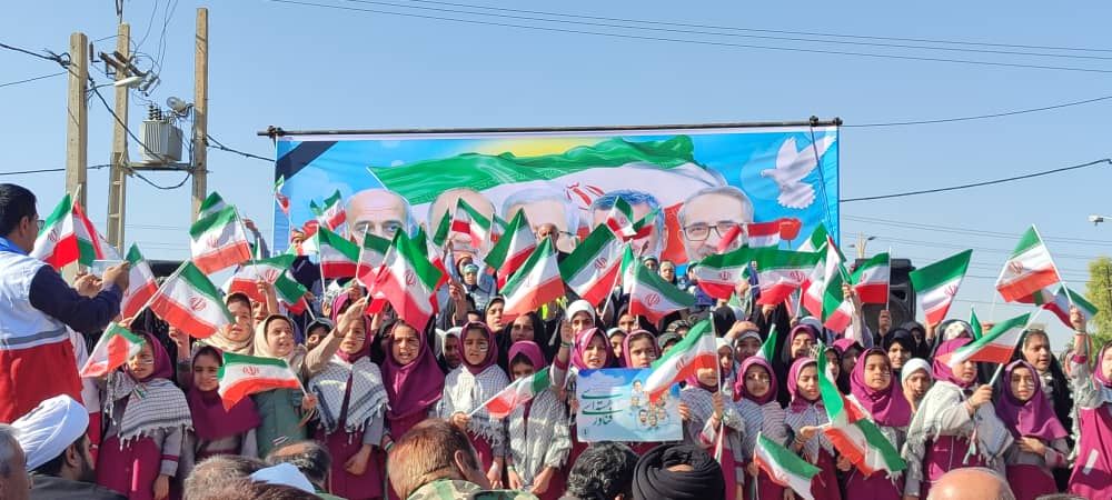 مدیر و کارکنان شبکه بهداشت و درمان شهرستان چرام همگام با دیگر اقشار جامعه در راهپیمایی یوم‌الله ۱۳آبان شرکت کردند