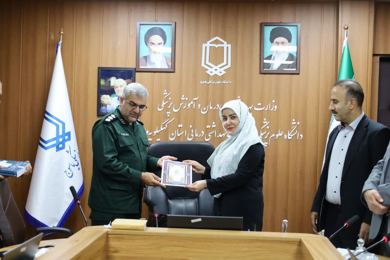 در پایان این نشست مدیرکل حفظ آثار و نشر ارزشهای دفاع مقدس و مقاومت ضمن اعطای حکم ریاست هیأت امنای شهدای گمنام علوم پزشکی و کتاب اسنادی این دانشگاه؛ با اهدای لوح از زحمات رئیس دانشگاه علوم پزشکی یاسوج تقدیر کرد.